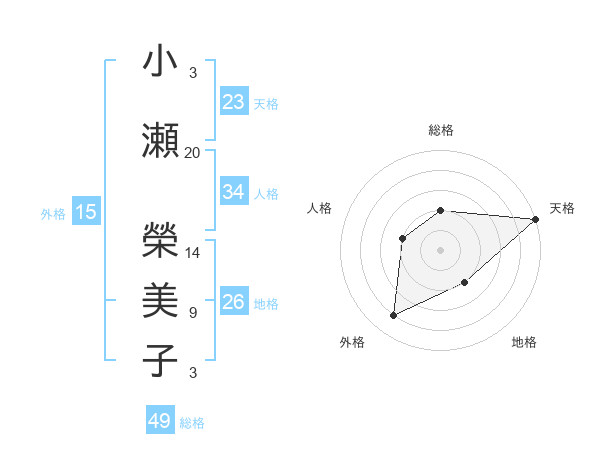小瀬 榮美子さんの総格は49画の2点!