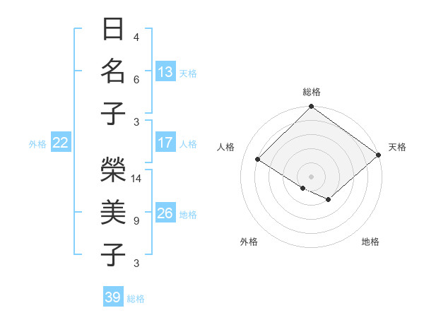 日名子 榮美子さんを姓名の画数から五運を鑑定