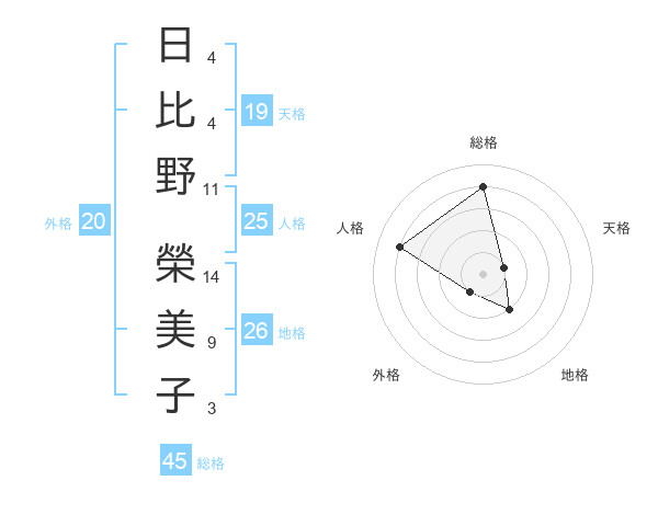 日比野 榮美子さんを姓名の画数から五運を鑑定