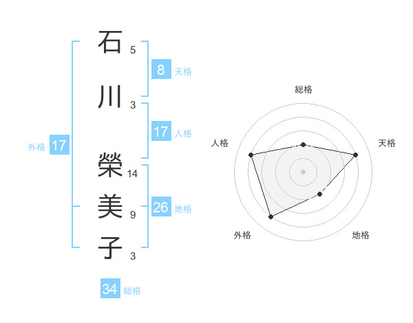 石川 榮美子さんの総格は34画の2点!