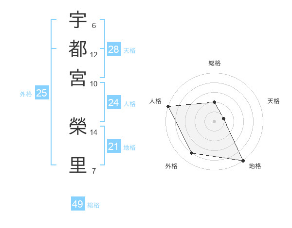 宇都宮 榮里さんを姓名の画数から五運を鑑定