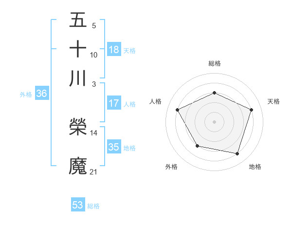 五十川 榮魔さんを姓名の画数から五運を鑑定