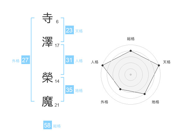 寺澤 榮魔さんの総格は58画の4点!