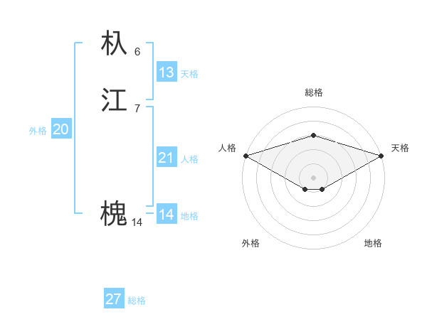 杁江 槐さんの総格は27画の3点!