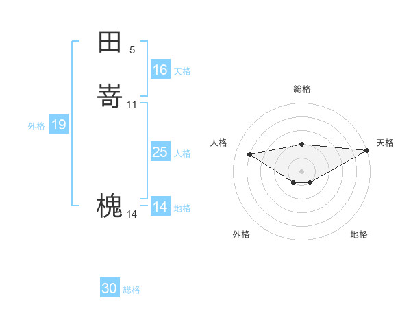 田嵜 槐さんを姓名の画数から五運を鑑定