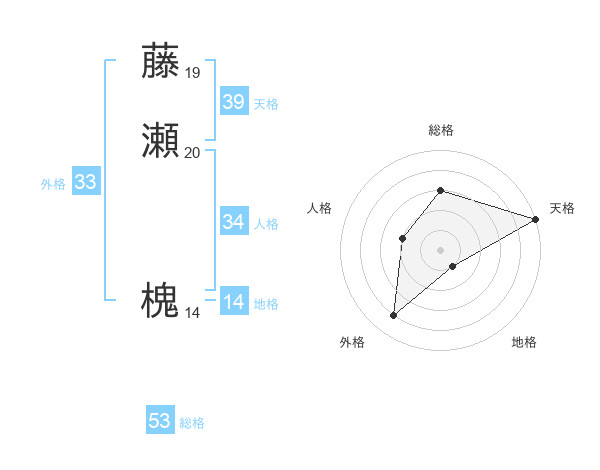 藤瀬 槐さんを姓名の画数から五運を鑑定