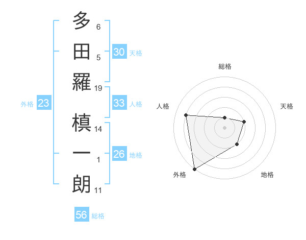 多田羅 槙一朗さんを姓名の画数から五運を鑑定