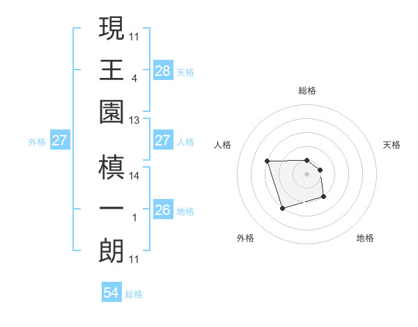 現王園 槙一朗さんの総格は54画の1点!