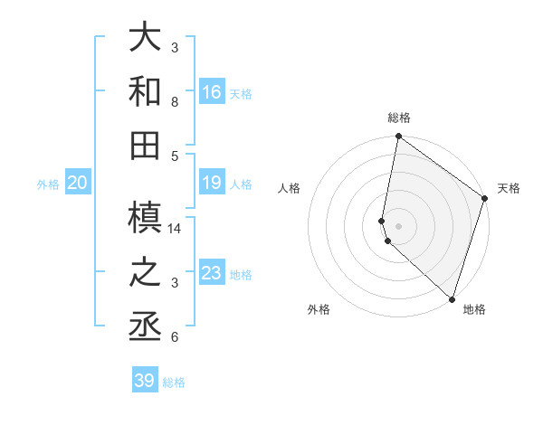 大和田 槙之丞さんを姓名の画数から五運を鑑定
