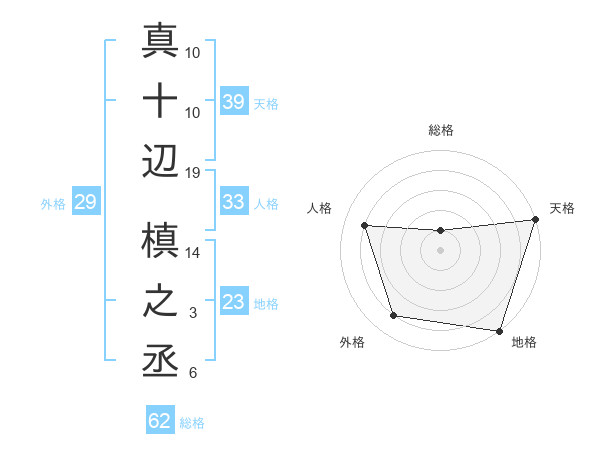 真十辺 槙之丞さんの地格は23画の5点!