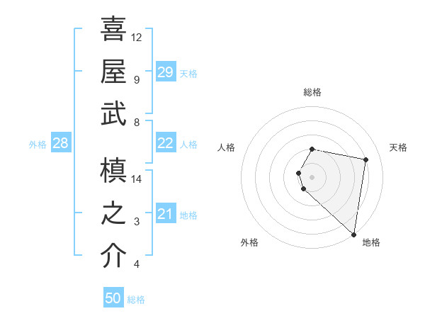 喜屋武 槙之介さんの総格は50画の2点!