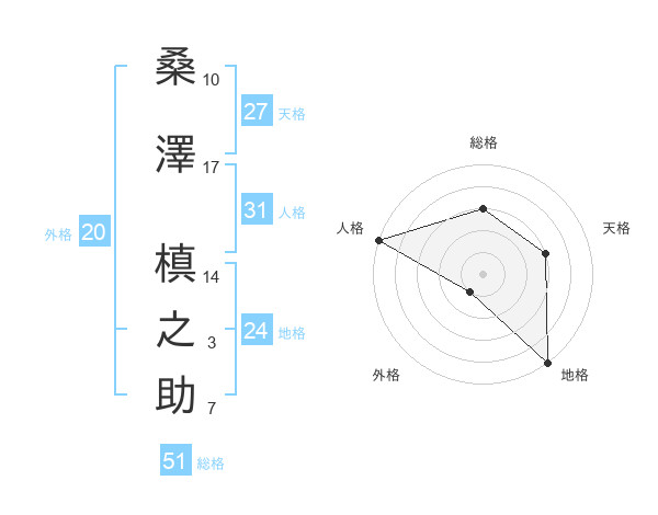 桑澤 槙之助さんの総格は51画の3点!