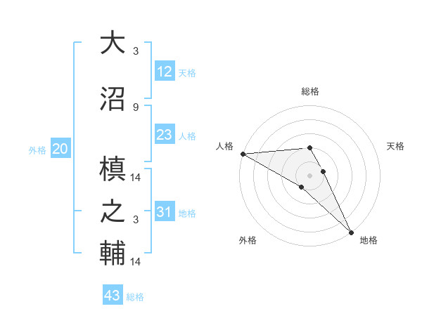 大沼 槙之輔さんを姓名の画数から五運を鑑定