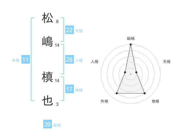 松嶋 槙也さんを姓名の画数から五運を鑑定