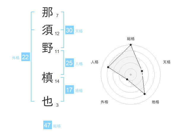 那須野 槙也さんを姓名の画数から五運を鑑定