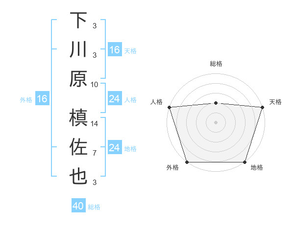 下川原 槙佐也さんを姓名の画数から五運を鑑定