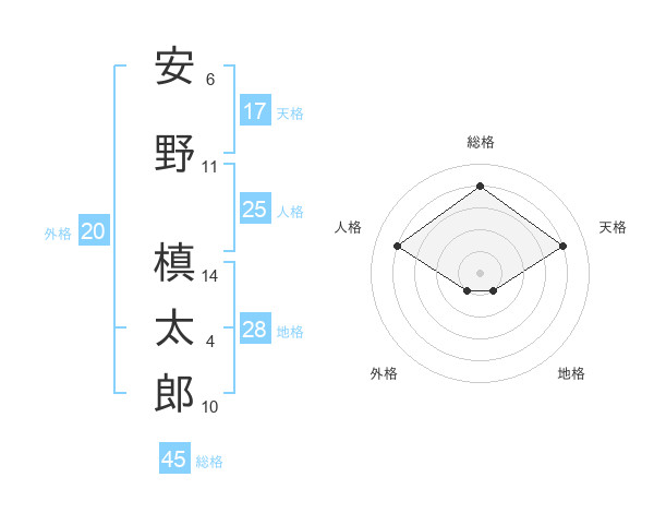 安野 槙太郎さんの総格は45画の4点
