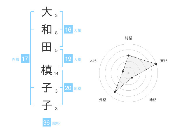 大和田 槙子子さんを姓名の画数から五運を鑑定