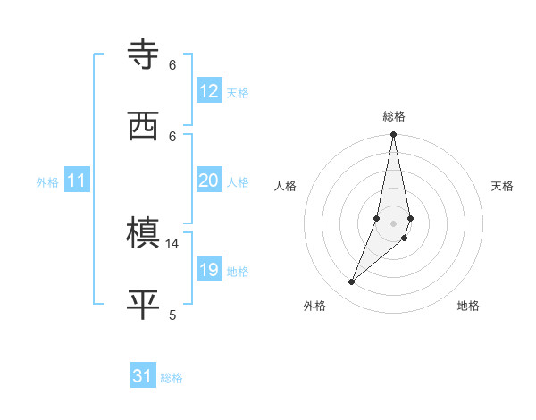 寺西 槙平さんを姓名の画数から五運を鑑定