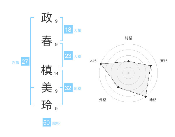 政春 槙美玲さんの総格は50画の2点!