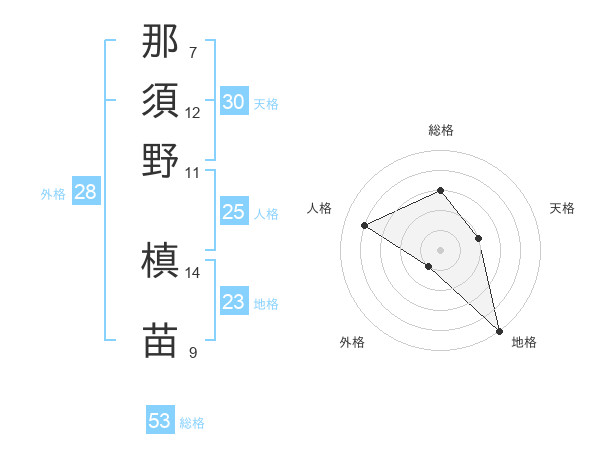 那須野 槙苗さんの総格は53画の3点!
