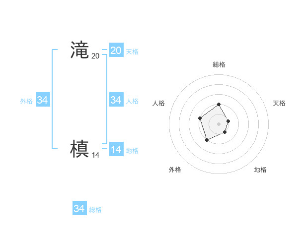 滝 槙さんの総格は34画の2点!