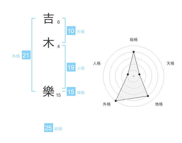 吉木 樂さんの総格は25画の4点!