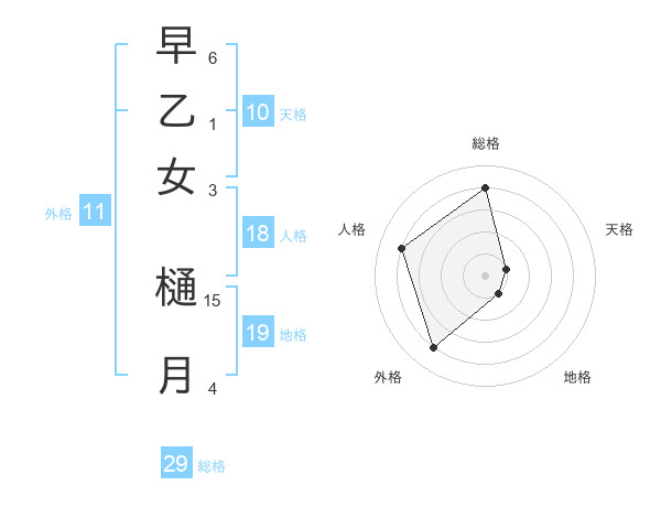 早乙女 樋月さんを姓名の画数から五運を鑑定