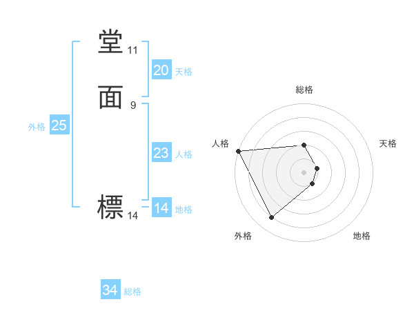 堂面 標さんの外格は25画の4点!