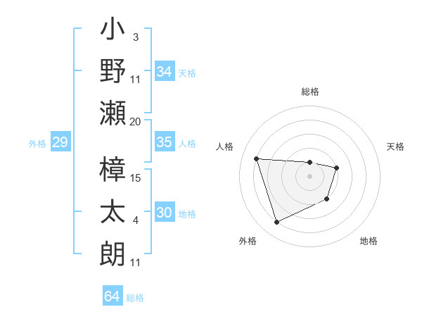 小野瀬 樟太朗さんを姓名の画数から五運を鑑定