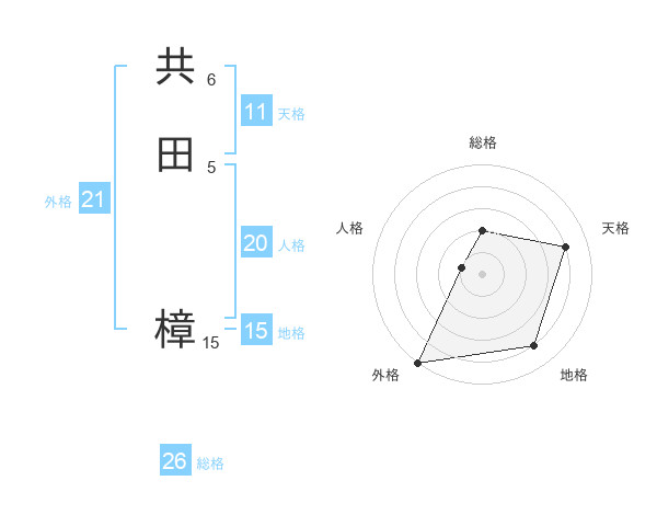 共田 樟さんの外格は21画の5点!