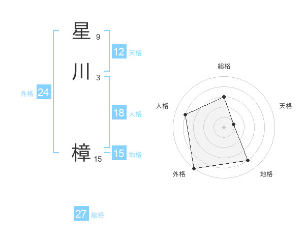 星川 樟さんの総格は27画の3点!