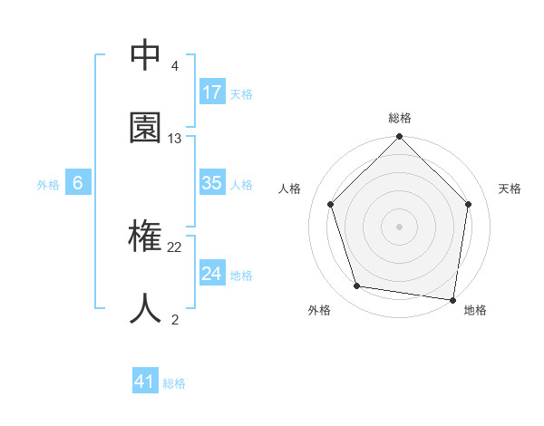 中園 権人さんの天格は17画の4点!