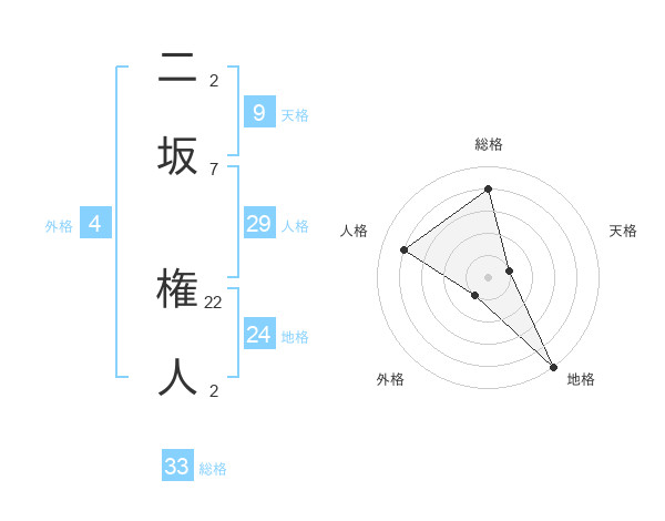 二坂 権人さんの総格は33画の4点!