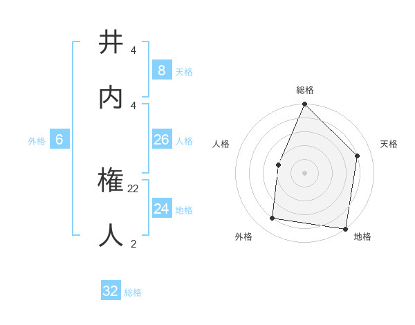 井内 権人さんの総格は32画の5点!