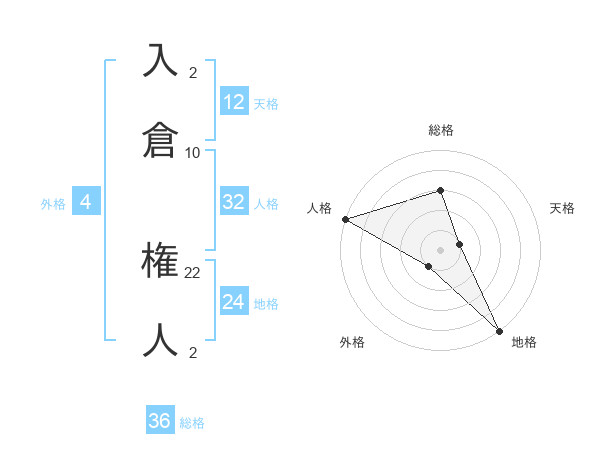 入倉 権人さんの天格は12画の1点!