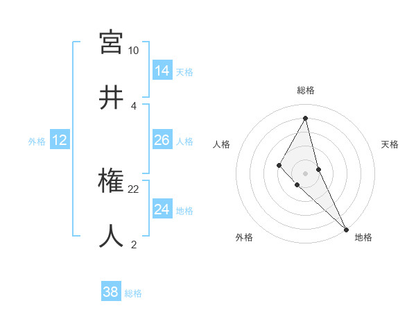 宮井 権人さんの総格は38画の4点!