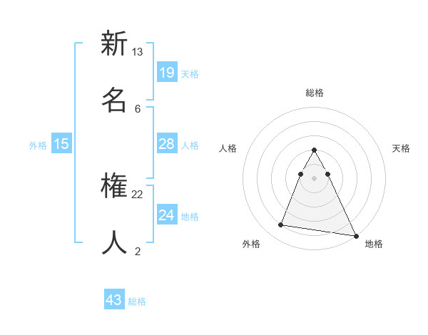 新名 権人さんの総格は43画の2点!
