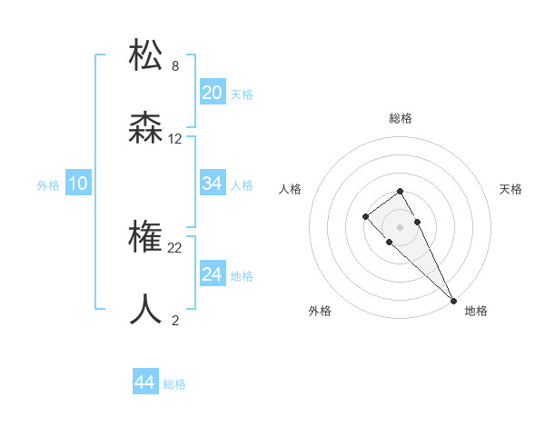 松森 権人さんの総格は44画の2点!
