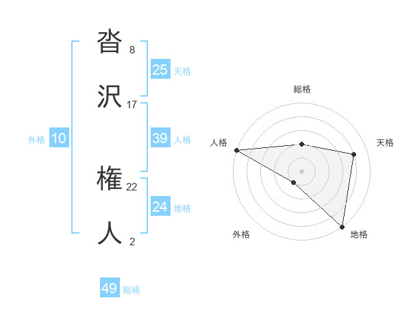 沓沢 権人さんを姓名の画数から五運を鑑定