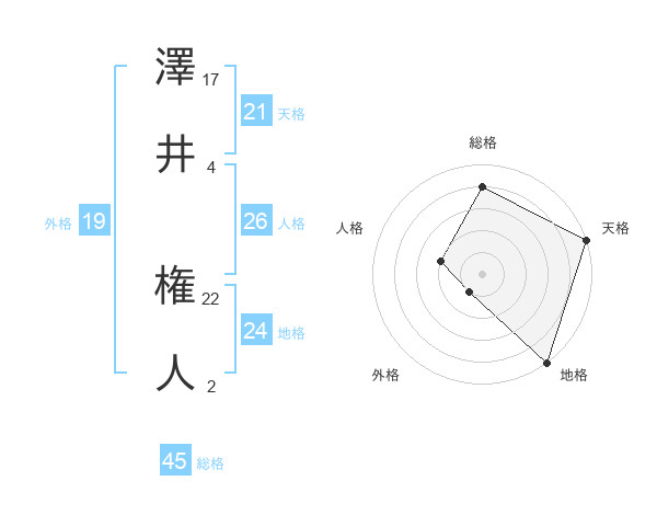 澤井 権人さんの総格は45画の4点!