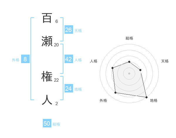 百瀬 権人さんを姓名の画数から五運を鑑定