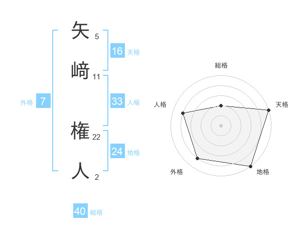 矢﨑 権人さんの総格は40画の2点!