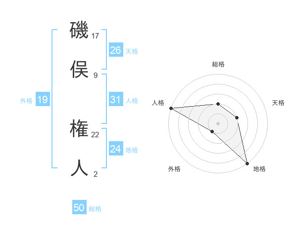 磯俣 権人さんの総格は50画の2点!