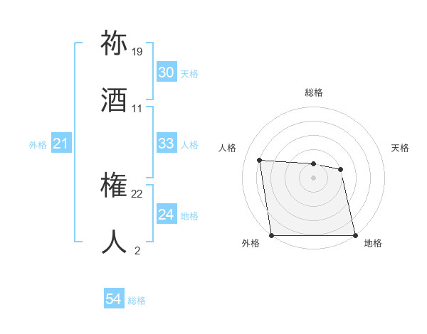 祢酒 権人さんの外格は21画の5点!