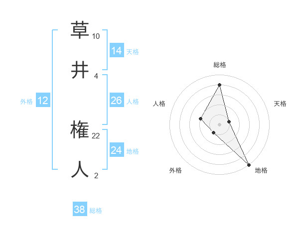 草井 権人さんの総格は38画の4点!