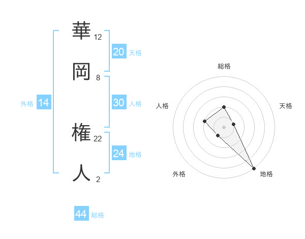 華岡 権人さんの総格は44画の2点