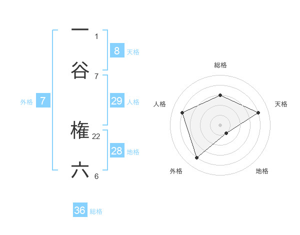 一谷 権六さんの総格は36画の3点!