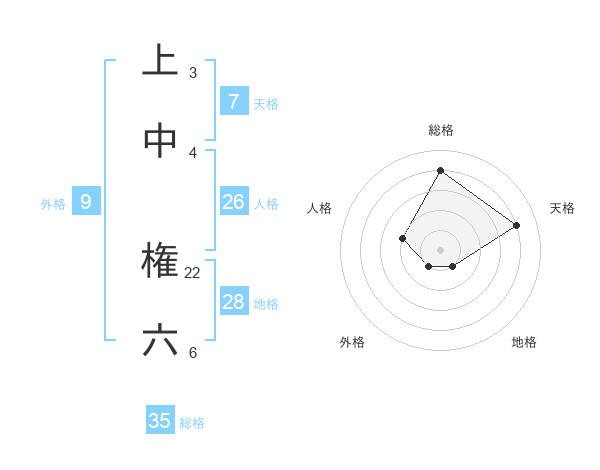 上中 権六さんの総格は35画の4点!