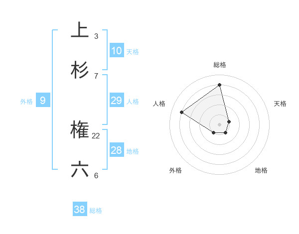 上杉 権六さんの総格は38画の4点!